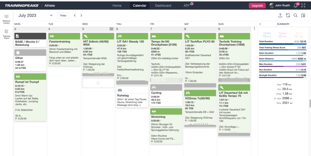 In der letzten Woche habe ich alle Einheiten brav absolviert. Jörg und ich verwenden Trainingpeaks zur Trainingsplanung